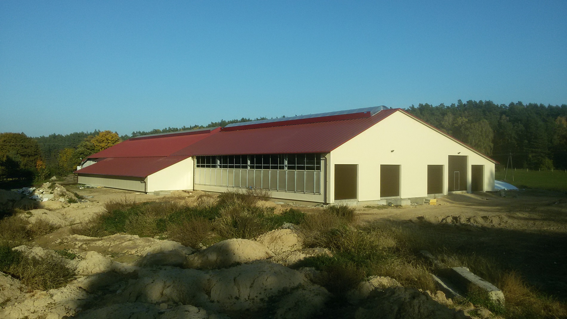 Dobudowane do starej obory? Teraz wszystkie bydło w jednym budynku?
