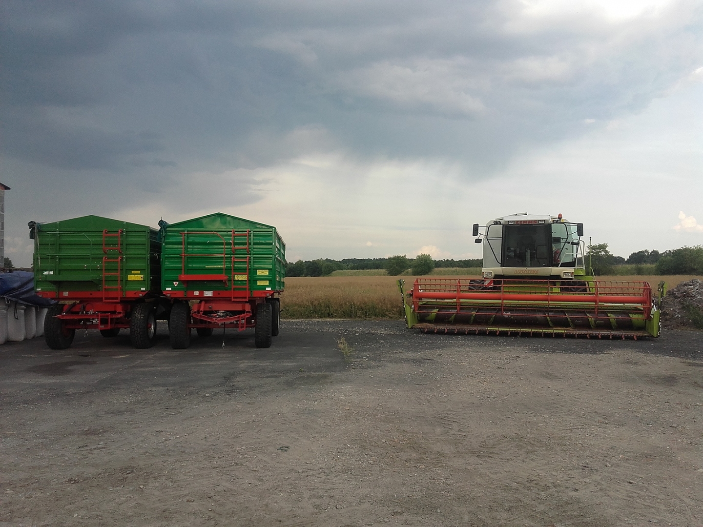 Wjechane na probe by kombajn sprawdzic. Ukoszone jedna pronarka. Wiltonosc niby 9.2% ale zobaczymy na skupie jutro. Znajomy bardzo z niego zadowolony ostatni wypust tego lexa 2001r mtg na silnik 3100, 6600ha skoszonych, na młocarni 2200h. Deszczu u mnie to nic nie padało to taka chmurka aby przeszła pogrzmiało i poszło dalej