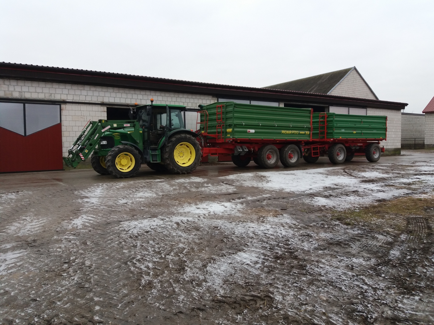 . Jest większy ciągnik także głównie nim się ciąga takie zestawy. Ten przeważnie z jedną jak zajdzie potrzeba jeździ.