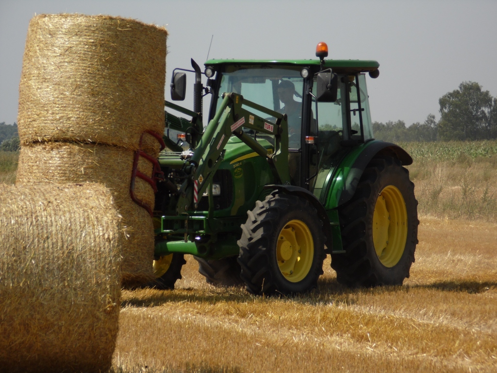 John Deere 5080R + Case IH RB344