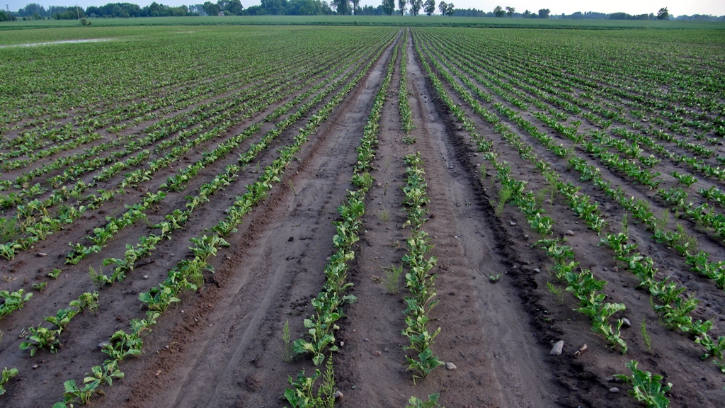 Pole jest na skłonie i je zmywa.