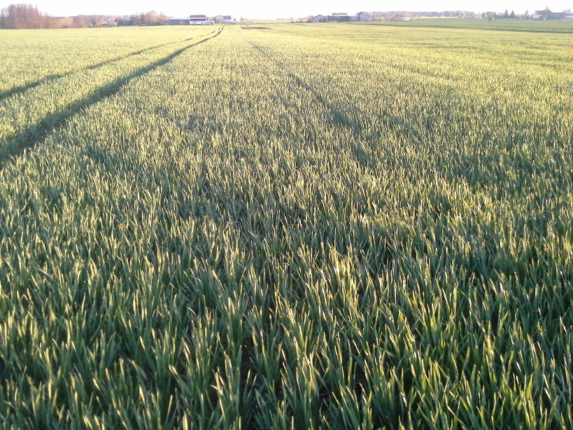 Pszenica w monokulturze. Siany na 2kl. 280 ziaren/m2 10.09.2013. Dziś jest 720-740 źdźbeł. Nawożenie jesień Microsol C 150kg/ha + 200 kg NPK 5-10-25. Wiosna 300kg sulfan Yary , 200 kg saletry + oczywiście micro i makro. Przed skracaniem i fungicydem.