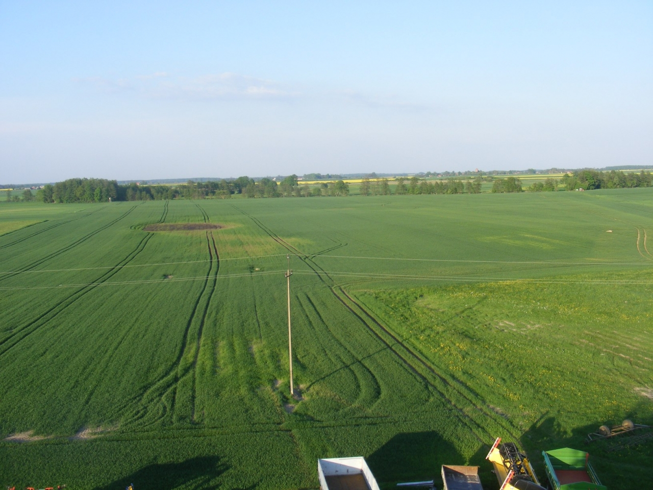 Gdzie wymokła to wymokła ale wcale jasna odmianowo byc nie musi po prawej wyraźnie odróżnia się klin ktory został dokupiony w październiku. Pszenica bez grama PK na jesieni tylko bakterie na slomę. Wiosną dostało 140N i coś tam dolistnie.