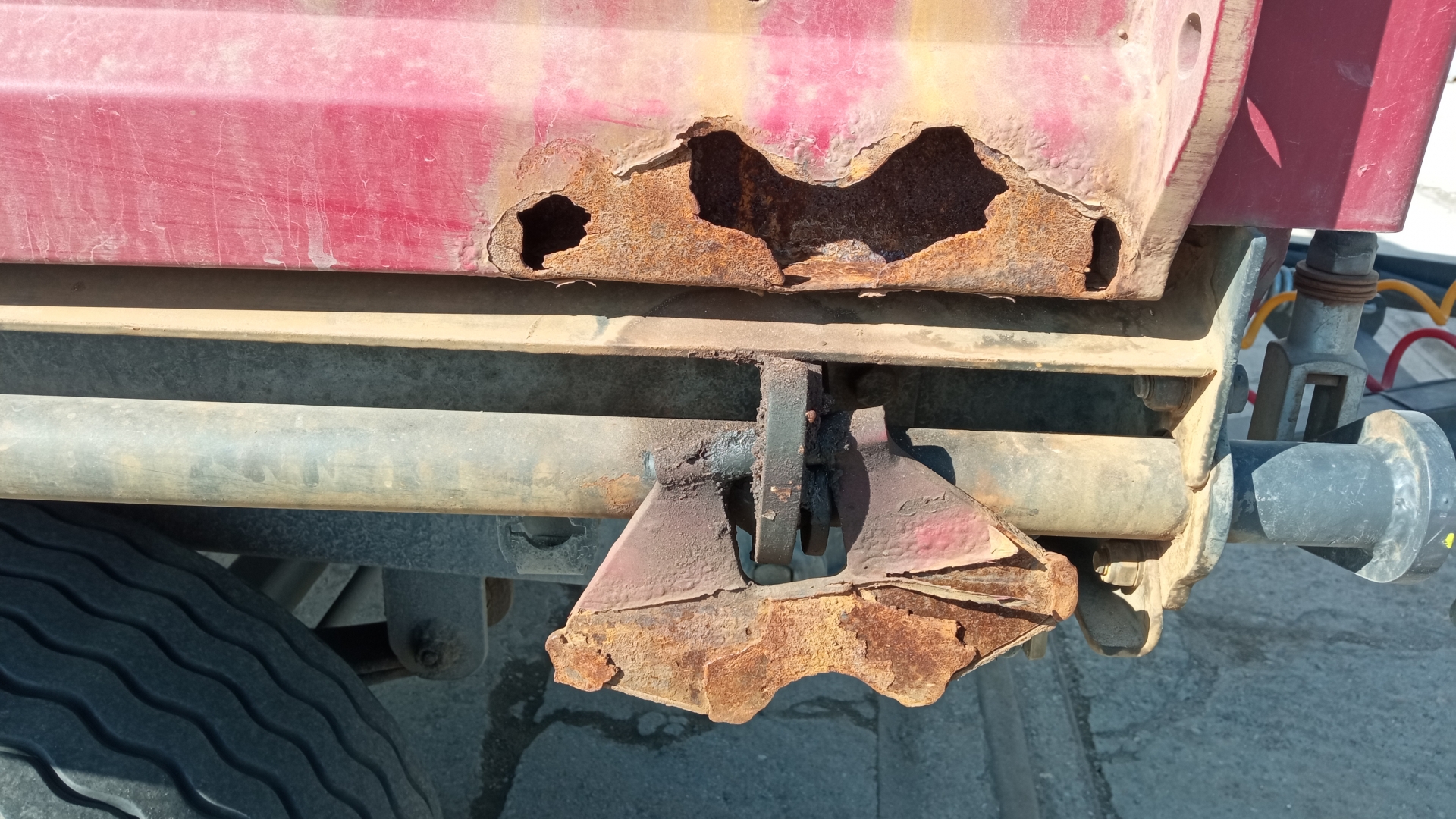 Przyczepy wożą, mausery, i palety z beczkami z chemią. Tu kiedyś coś się jednemu operatorowi, właśnie rozlało, i cała przyczepa była biała, później myte karcherem, więc pewnie gdzieś wleciało. Ale oprócz tego, operatorzy nie otworzą normalnie burt, tylko zwolnią rygle i burta, spada po prostu odbijając się...ciekawej kiedy kolejne mocowania, odpadną. Ogólnie mamy w zakładzie same Zasławki.