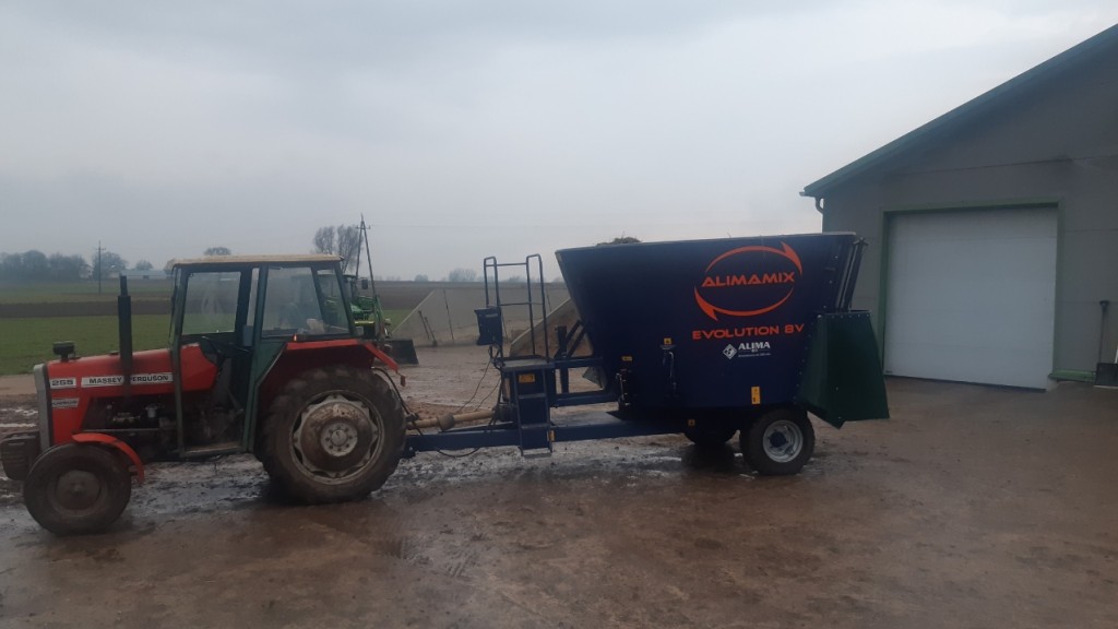 Ogólnie to od poczatku jestem za poziomym Intermixem ale dla porównania chciałem spróbować pionowego. Tutaj widze problem że jak np mieszam dla krów na jeden dzień ok 700 kg to miesza słabo, bardziej gania w kółko po wozie materiał a trzeba wziąść poprawke na to że w sezonie pastwiskowym dla krów wystarczy zamieszać 300-400 kg i tu poziomy raczej wygra. Druga sprawa to że ten jest na styk to obory dla krów a poziomy wszedł by łatwiej i poziomym z taśmą wsypał bym do cielętnika a z tego trzeba taczką zaciągnąć.