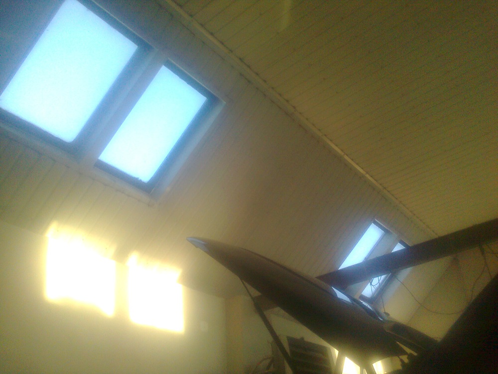 Dach to zewnątrz blacha i wewnątrz blacha, w środku wełna, i jest naprawdę ciepło, śnieg topi się jedynie na szybach, okna dachowe super sprawa, ale te to kupione po taniości przeciekały, jak pada grad to dopiero jest jadka
