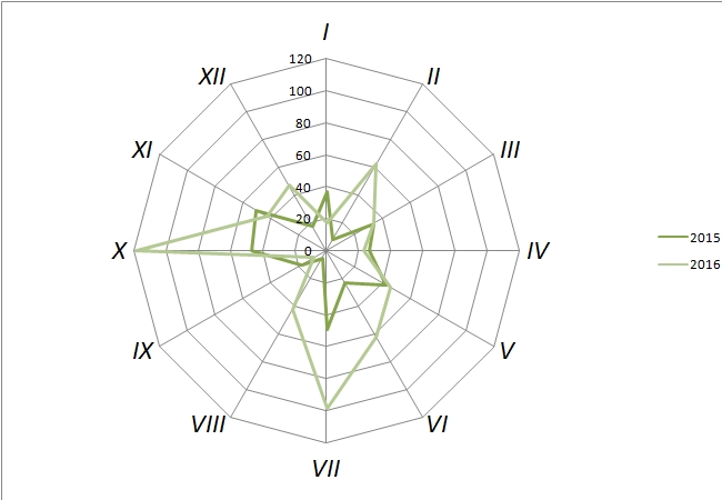 rozkład opadów 2015 i 2016