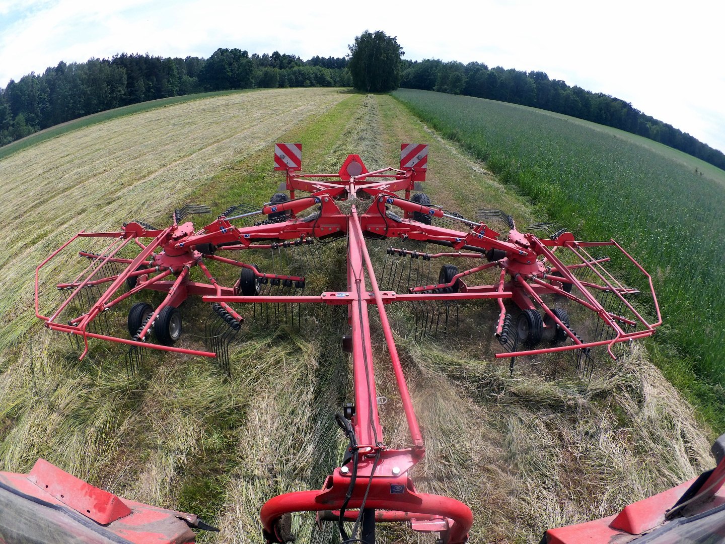 Szerokość 7,5 m. Zadowolony w 100 %, jak dobrze "zgwałcisz " handlowca to 60 tys. netto. Za Lely Hibiscusa też chcieli tyle samo ale jakość wykonania i masa o prawie 1 tone mniejsza na korzyść Kuhna. Do Lely małego ciągnika nie założysz.