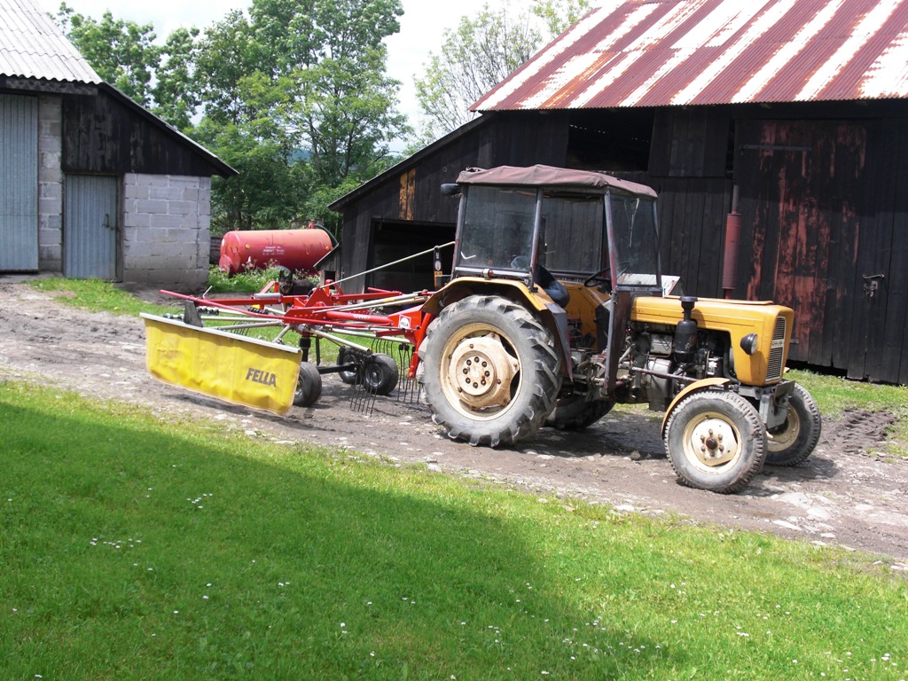 Hehe musiale cos z tym zrobic, zalozylem jej na przod 75kg dodatkowych obciaznikow, jak bedzie malo to sie cos jeszcze dolozy. Nawet w miare jest stabilnie, ale jak teraz na pelnym gazie podnosze to pierwsze leci przod w gore a dopiero pozniej zgrabiarka hahahaha