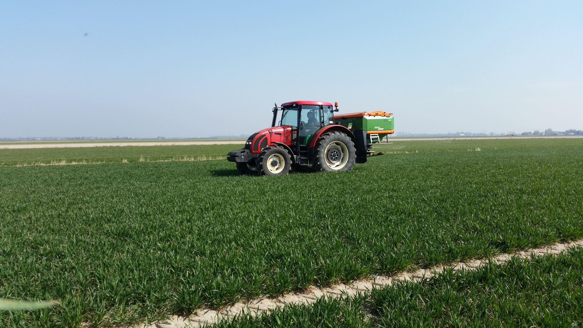 2t daje rade, najwięcej mieliśmy wsypane 2,3t, ale z przodu mamy 800kg obciążenia i to już jest taki max dla tego ciągnika. Sam rozsiewacz waży 700kg. Kris, dzięki, teraz to hektarów ubywa