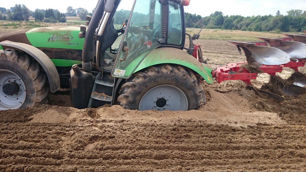 Zarwała się lisia nora pod kołami, a w piachu nie miał oparcia, żeby wyjechać samemu i trzeba było wyciągać.