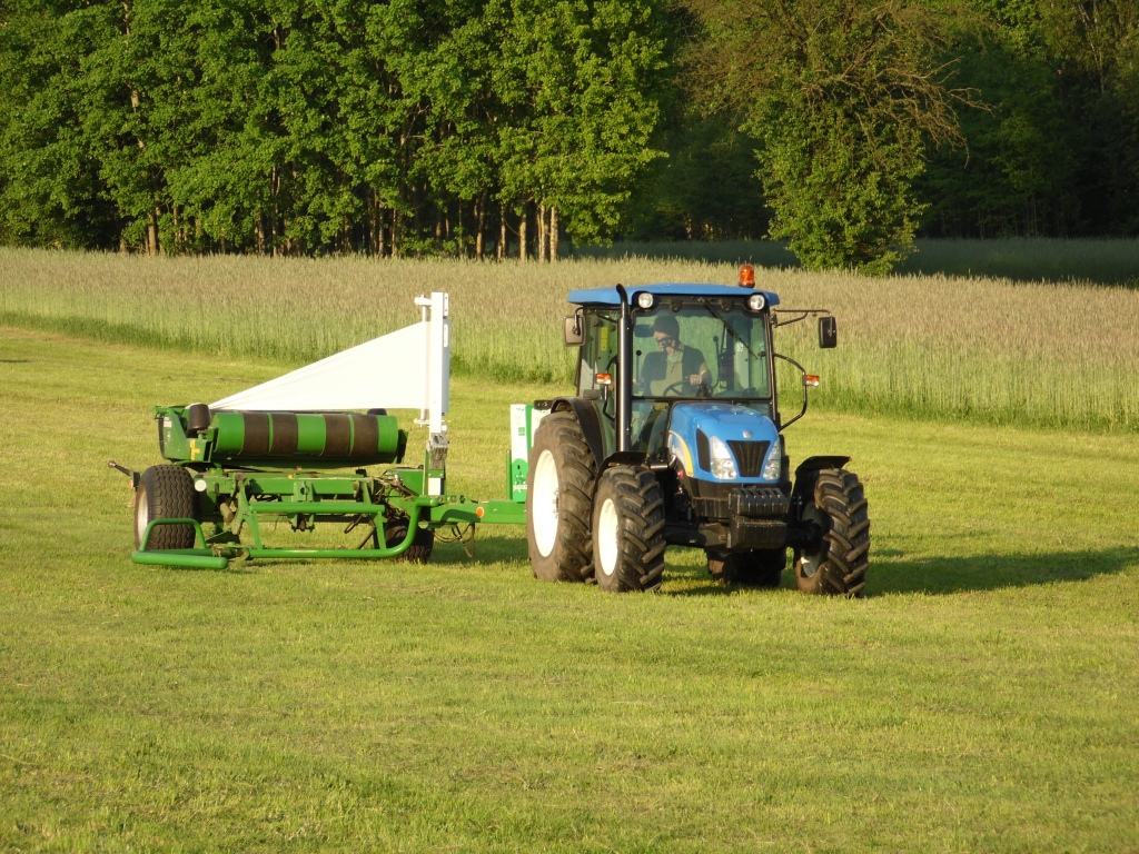 Nie wywalam gdzie popadnie tylko przed kolejną belą. Jak gęsto stoją nie ma sensu zwozić owijarką w kupy i z reguły nie ma na to czasu. Przy ostatnim pokosie i małym plonie czasem się zostawia po kilka w jednej okolicy.