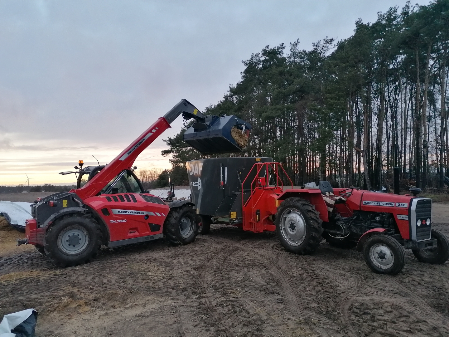 Jak dobrze się zepnę to 20 min skład 40 kg słomy pszenej +/- 200 kg sianokiszonki z 2 pokosu z beli i resztę sianokiszonki z pryzmy 1 pokos po sieczkarni do 800 kg i potem qq dosypuje do 2000-2100 kg w zależności jak wyjedzą. I na 28 dojnych wysypuje 1000-1100 kg a reszta idzie na młodzież i opasy łącznie wóz idzie na 75szt z czego młodzież dostaje jeszcze sianko nie tylko wóz. Spalania jeszcze nie mierzyłem ale Ferdek trochę słaby jest do wozu dobrze ze jest przekładnia dwu biegowa. A pobierać to bardzo chętnie pobierały od samego początku.