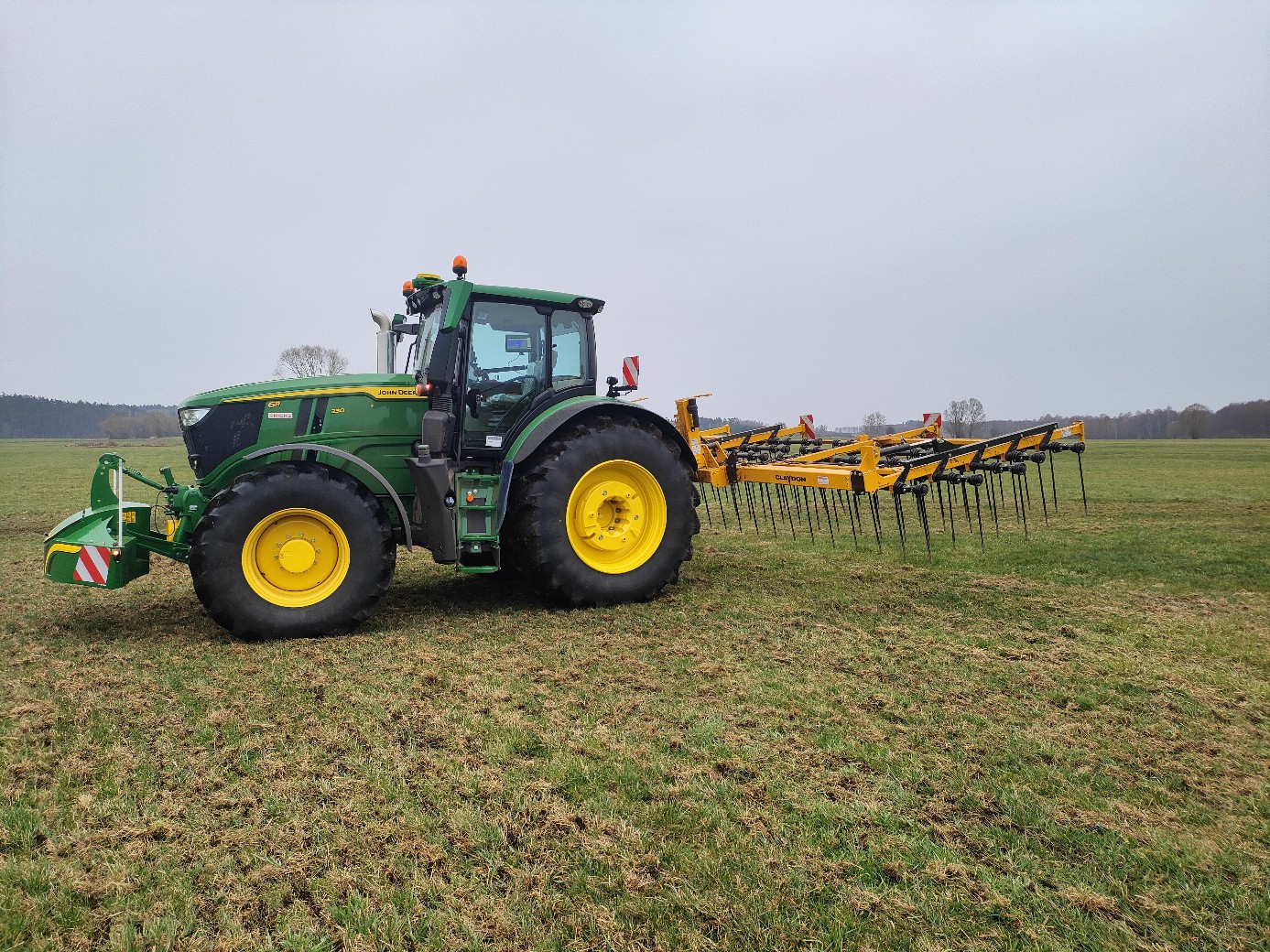 Testy zgrzebła, a że nasza R'ka za mała to dostaliśmy w komplecie ciągnik. Nie sprawdzałem wagi więc ciężko mi powiedzieć ale maszyna walnie długa, rama też jest konkretna i na dodatek obciążniki w koła swoje robi