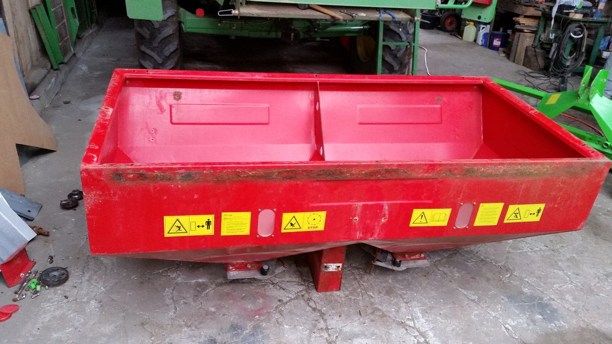 Rozsiewacz już pomalowany i osadzony na wózku, projekt ojca Ja tylko pomogłem wyczyścić.