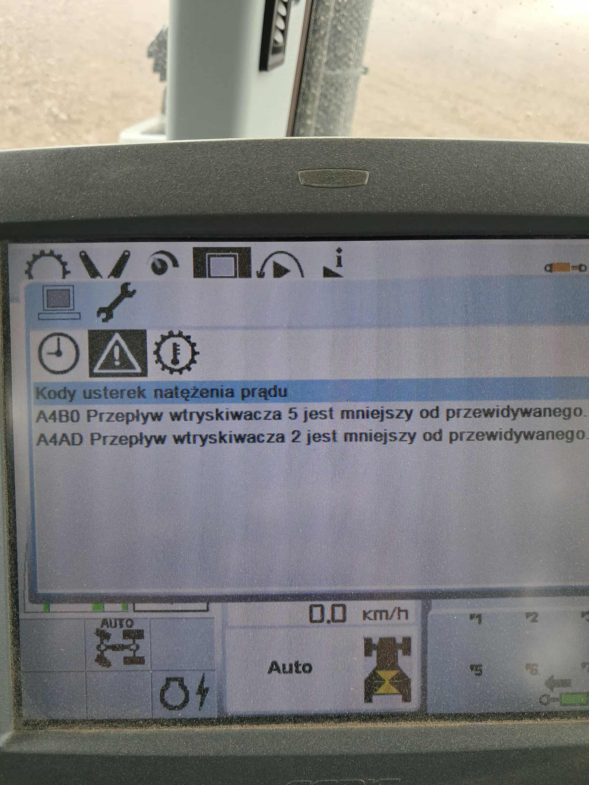 Dzień dobry. Miesiąc temu kupiłem Arionie Cmatik rok 2016. Bez obciążenia wszystko jest ok. Dobrze odpala. Po wyjechaniu w pole z obciążeniem wyskakuje błędy A4B0 i A4AD widoczne na zdjęciu w załączniku