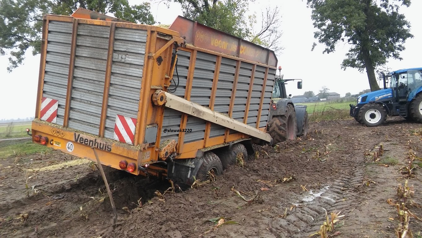Traktor przeszedł po wierzchu a przyczepa się zapadła