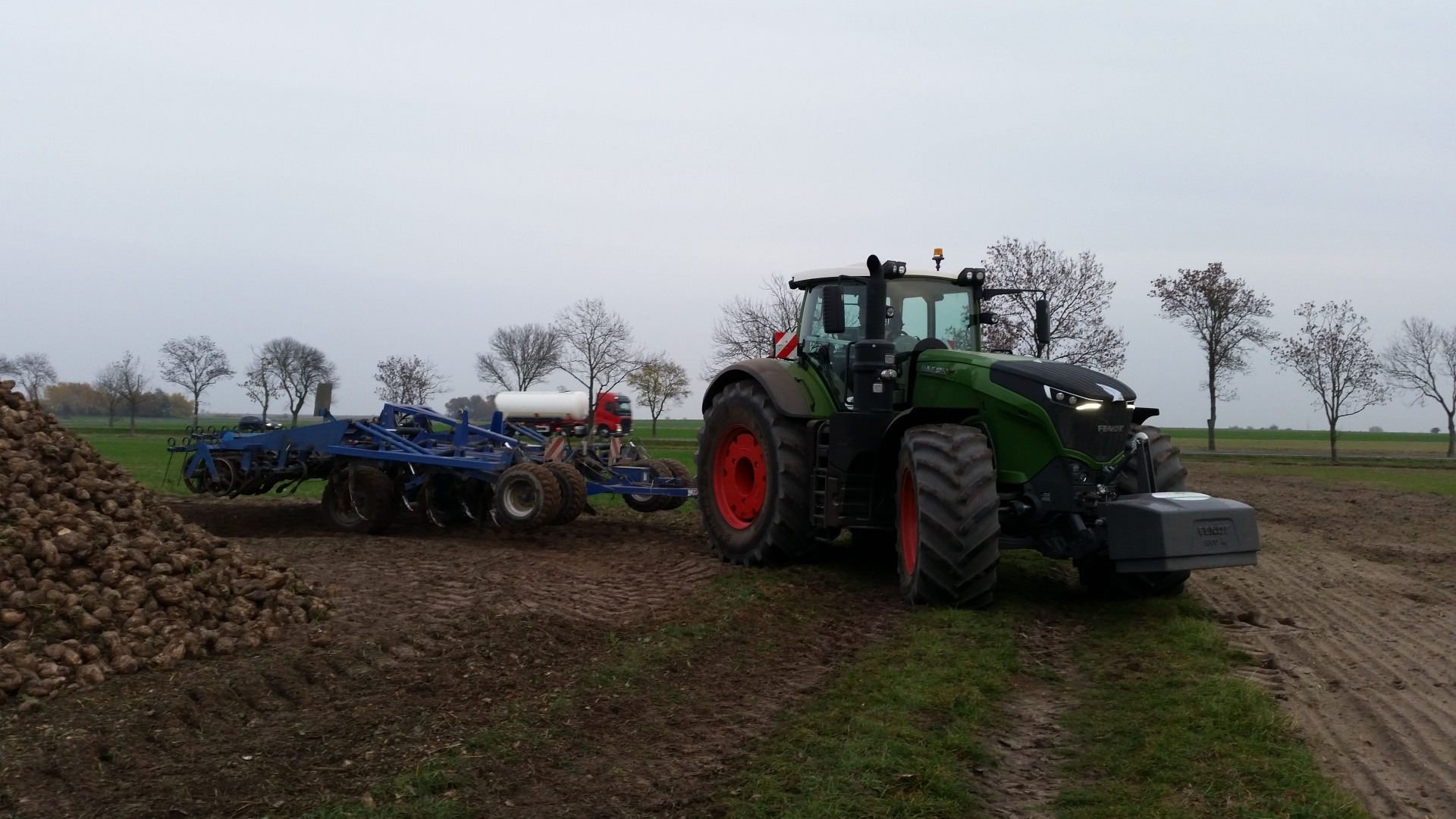 Robili na 35cm po burakach (nie pytajcie mnie po co tak głęboko), jeździł 12 km/h i dość mocno go trzymało. Spalanie wychodziło w granicach 14 l/ha wg komputera. Co do ciągnika to pewnie i tak go kupią, bo to fendt, a że mają już 3 sztuki to na inne marki nie patrzą. A agregat był pożyczony tylko do testów, mieli też testować z TopDownem 5m.
