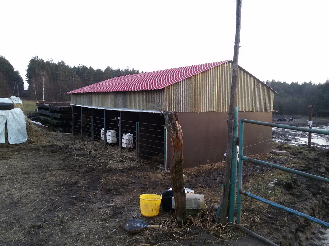 @rolnik007 jak jest wietrznie to jest opuszczana kurtyna (ten biały pasek nad bramkami) wtedy jest cicho i nie wieje ale planujemy w tym roku to w jakiś sposób udoskonalić, w zimę nie było żadnych problemów, dużo lepiej przezimowały niż jak wcześniej były utrzymywane w oborze, wiadomo czasem jakieś zachorowały bo to jest nieuniknione ale było tego znacznie mniej niż zanim to zrobiliśmy. Wymiary to 6m długa a szerokości dobrze nie pamiętam ale coś koło 4m, stelaż wykonany z profilu i kątownika, idąc od góry: dach najzwyklejszy blacho trapez, poniżej stary świetlik z obory który został po wymianie dachu, a boki i przegrody z płyty warstwowej wodoodpornej