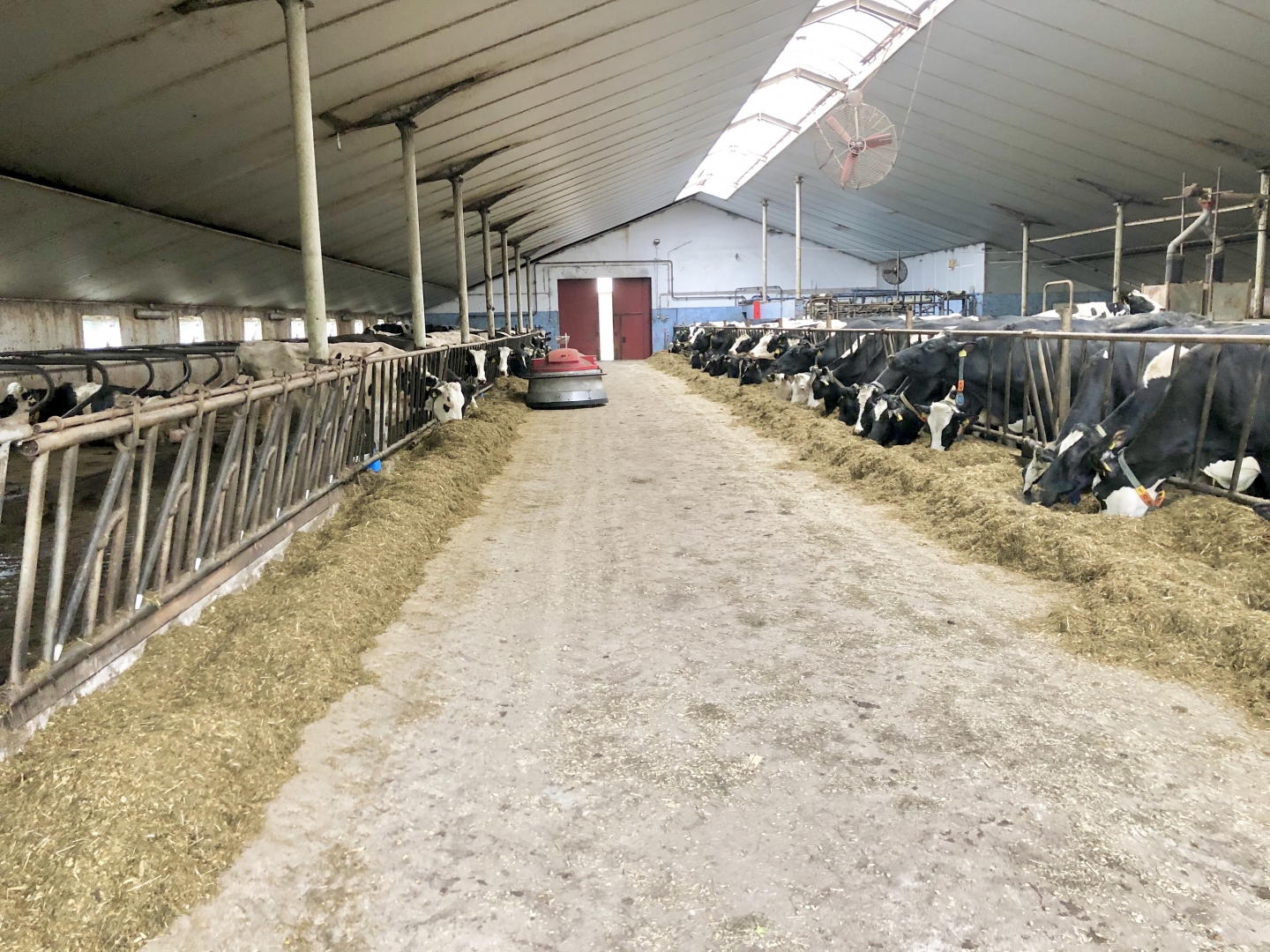 Dwie obory na rusztach, trzecia obora na głębokiej sciolce dla jałówek takich między 3 a 9-10 miesięcy. Małe cielaki w pojedynczych igloo, a później w stodole mam kojce porobione i grupujemy je po 4 sztuki. Tam mają suchy tmr do oporu i jeszcze poimy mlekiem, ale powoli schodzi się tam z mleka i wtedy zabieramy już w grupy na głęboką. Drabina paszowa jest tez po prawej kawałek, nie widać bo nie stoję na samym końcu obory, ale ja nigdy nie łapie w te drabiny, czasami tylko sporadycznie. Mi najlepiej pasuje w legowiskach łapać