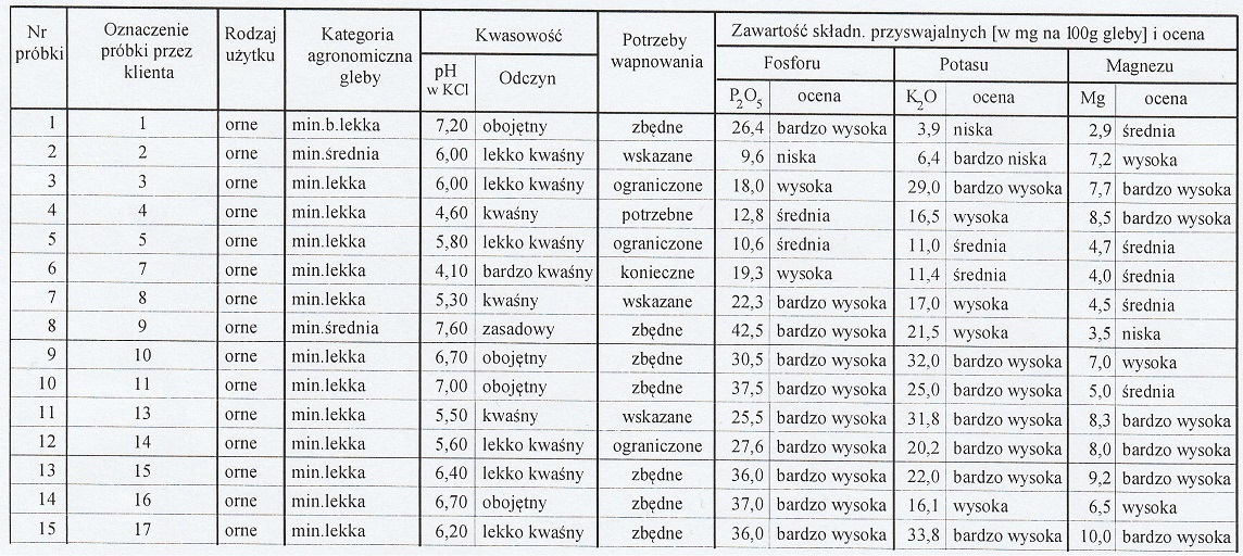 Wyniki badan gleby