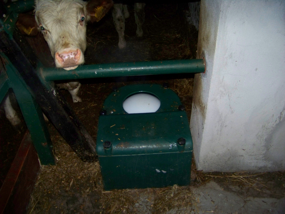 pierwsza sprawa, takie poidło jest liczone na krowy mleczne, które w nocy podchodzą do wody, opas(ok 250kg) w nocy nie ma chęci tyłka podnieś, piłka przymarza bo nie podchodzą do wody.