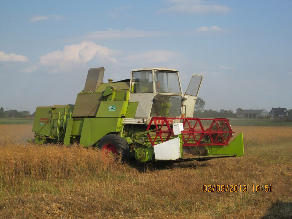Stół do rzepaku własnej produkcji z zakupioną w zeszłym roku elektryczną kosą do rzepaku.