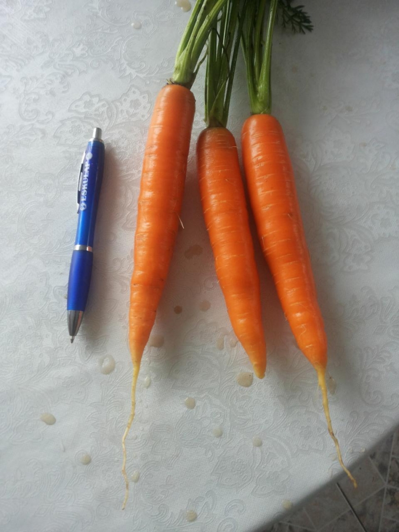 A marchewka rośnie i jeszcze nie zakończyła wegetacji i na razie jest taka a na jesień się za okrągli