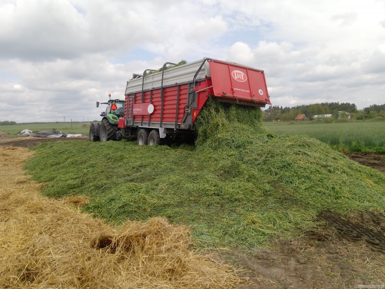 Dlaczego? Gdy my cały czas jesteśmy we dwóch to brat grabi, ja prasuje, tutaj by to nie przeszło (zbiera starszy brat, przyjechał tak jakby usługowo). Druga sprawa, może samo zbieranie jest fajne, nie wiem nie zbierałem, ale praca na pryzmie to masakra. Rozgarniałem i ugniatałem ładowarką z krokodylem. Ile ja się muszę nakombinowac by to jakoś wyglądało, to jednak nie jest to co kukurydza, że dwa razy machnie się łyżką i jest równo. Kolejna sprawa wozi z 5 km, paliwa idzie tyle samo albo i więcej jak ja bym zwinął i zwiózł przyczepami. Czasu też podobnie.