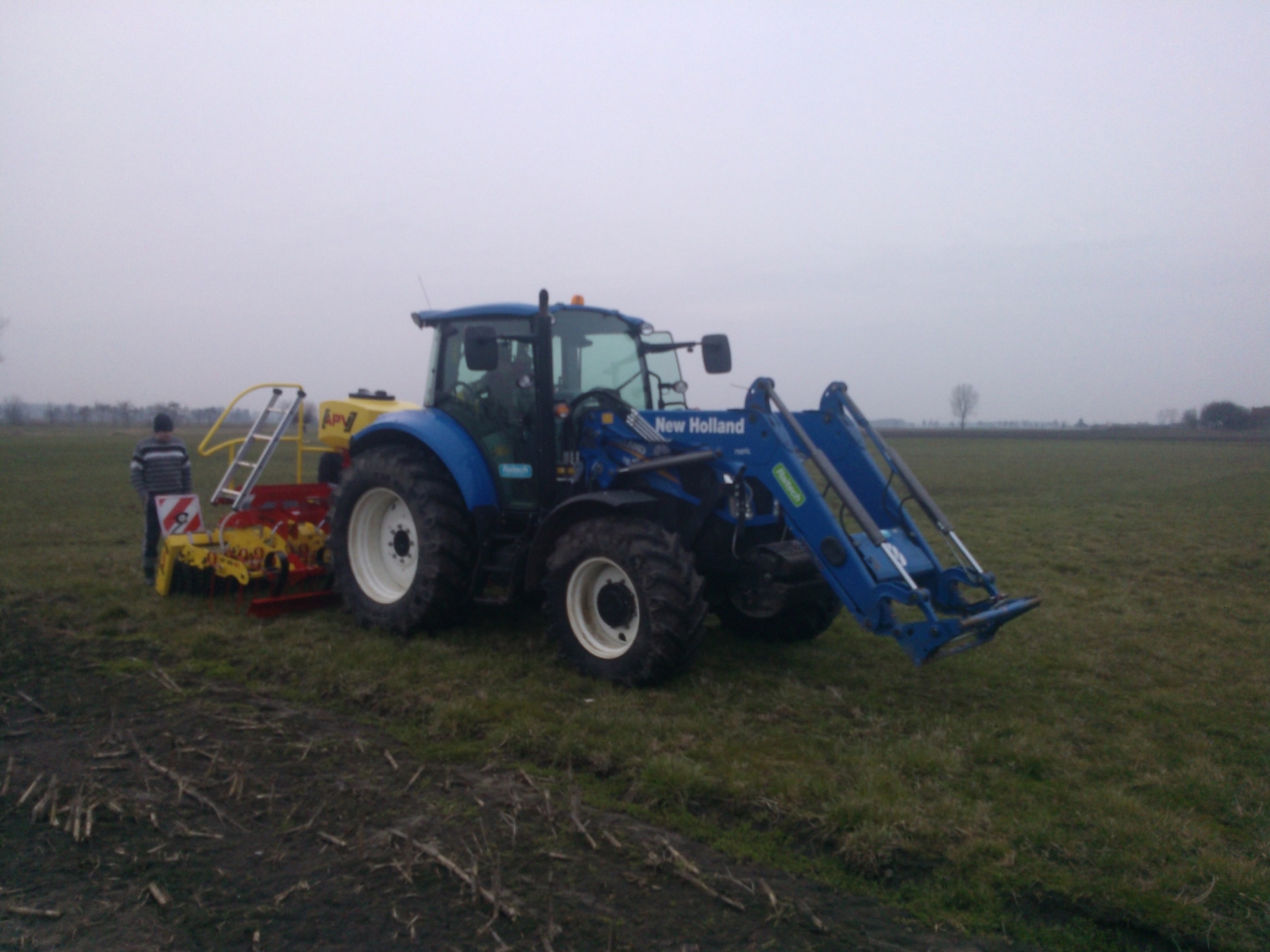 Bardzo fajny efekt, nasion nie widać, resztki starej trawy ładnie ściągnięte na brzeg pola. Najpierw szła włóka, później siewnik.