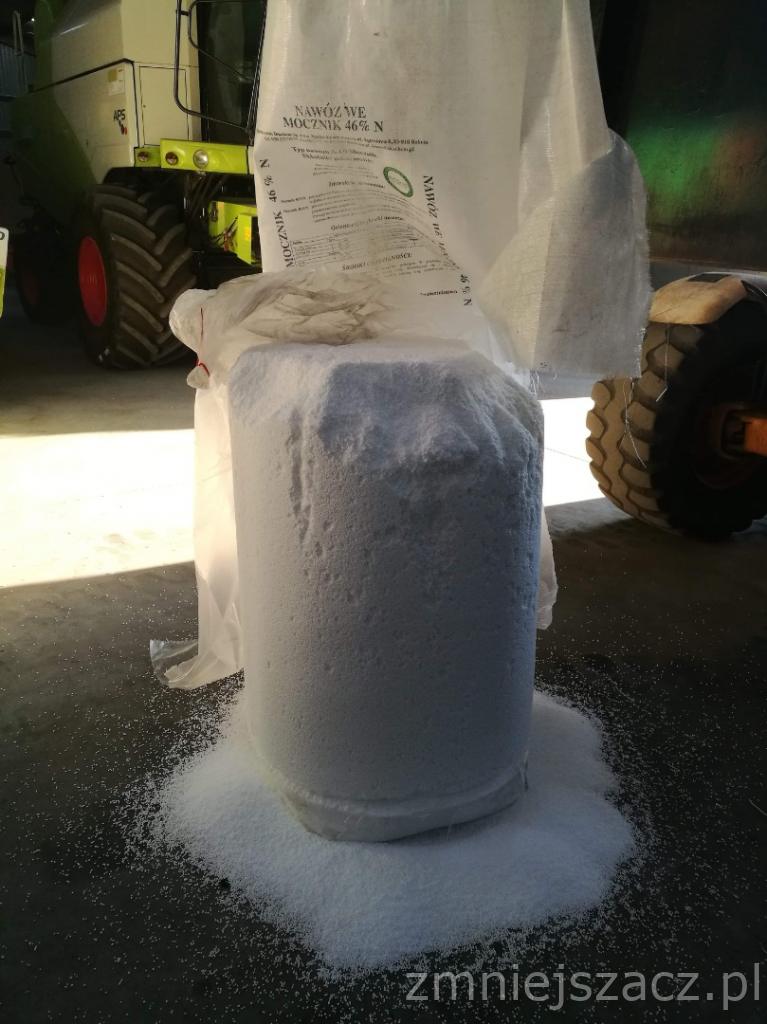 Chyba powinieneś zgłosić się do dostawcy, dziś na koniec siania saletry stwierdziłem że wysieję ostatni worek mocznika drobnego który stoi dwa lata. Byłem przerażony ale niepotrzebnie. Tylko 5cm od dna było zawilgocone i zbrylone a pół roku stał na dworze ale pod plandeką.