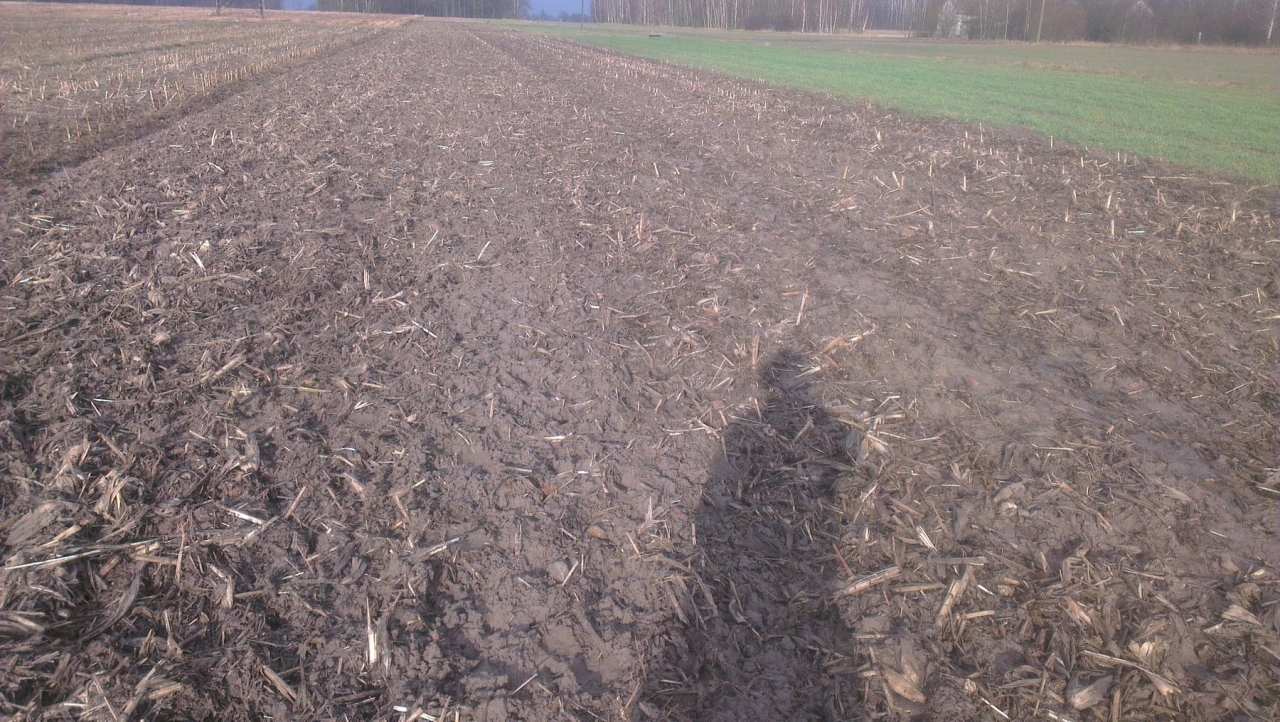 Ściernisko po kukurydzy, przerobione jesienią talerzówką. Aż strach pomyśleć co by było gdybym obsiał to pole przewódką.