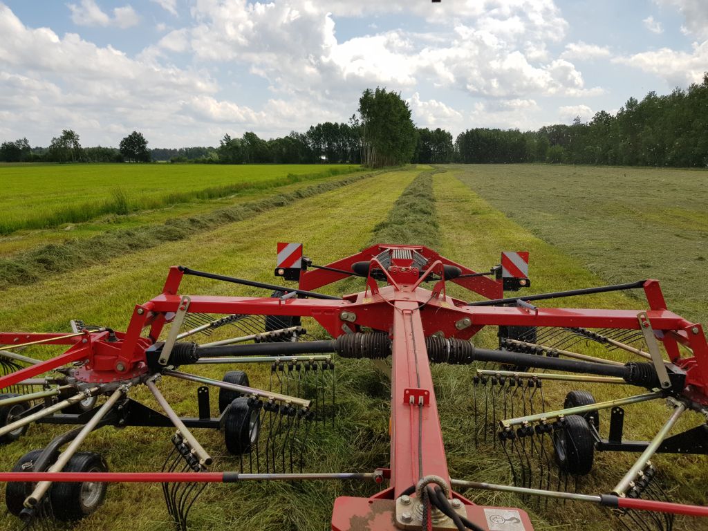 Ja podzielam zdanie @duzy1, do boku grabiąc przejdzie w dwie strony i jest elegancki Wał, po tej co zgrania do środka walki są po prostu za małe. Przy tej co grabi do boku przejeżdżamy 2x mniejszy dystans, wiec to co napisał Tomek, mniej paliwa, szybciej i najważniejsze maszyna pracuje dużo mniej, mniej palcu w podbieracz strzeli, łożyska krócej pracują, ja zbierałem po różnych grabarkach. Łąki mamy praktycznie w jednym kompleksie wszystkie obok siebie, przedzielają tylko drogi i rowy. Wszyscy chcą zawsze zbierać z tych łąk gdzie grabiła zgrabiarka do boku