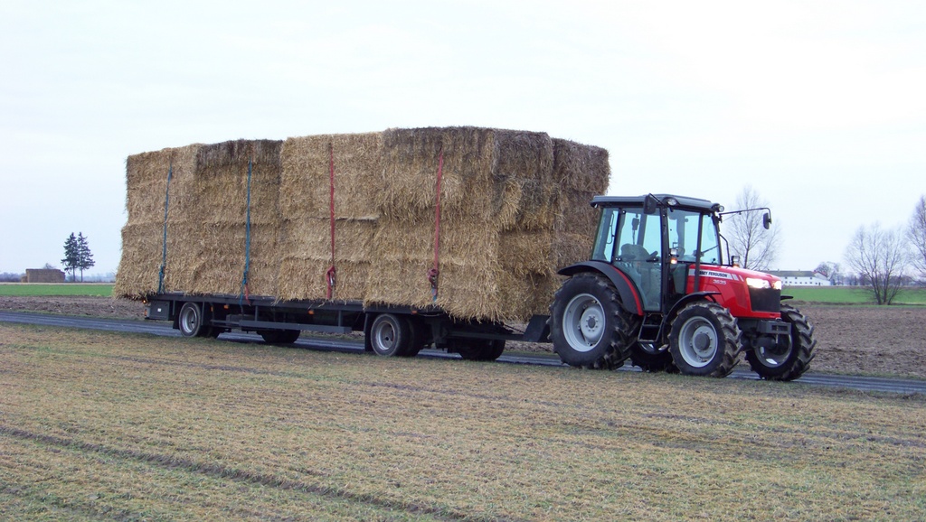 Sporo ozimin tak wygląda w okolicy :( Kostki nie ważone, na oko 250kg, mokre z góry ok 20cm reszta sucha, od spodu raczej tylko brudne od ziemi, okrągłe pewnie bardziej przemokną w stogu. Kostka wystaje ok 60cm, zawsze tak wożę i jeszcze nigdy nic nie pękło, prędzej przy nie uważnym rozładunku/załadunku sznurek można popsuć, a że jest ich 6 to nie robi różnicy.