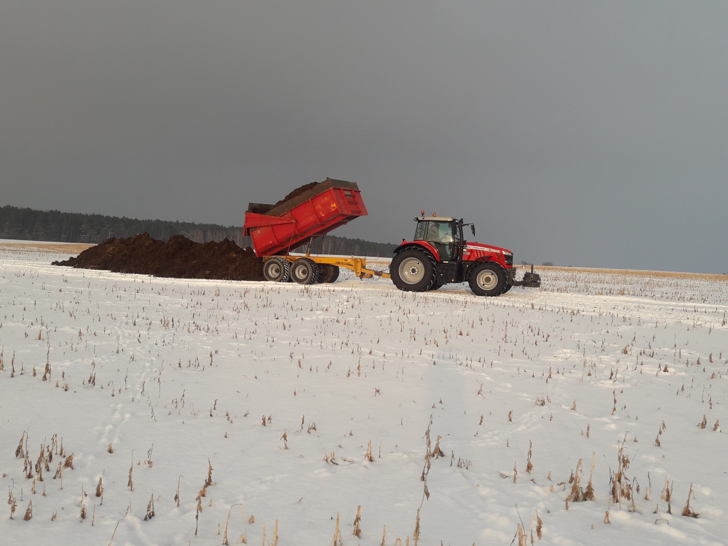 pioter napisał(a):Dawno tyle sniegu byloZ obornika nie kapie to przyczepa czysta, ale główna zasluga to operator ladowarki.