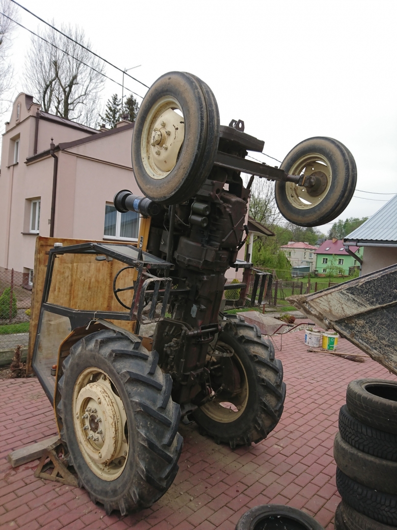Plan był taki aby ten korzeń który jest widoczny zapiąć linką i pociągnąć, ale .... linka miała ok 2m i została przypięta do górnego zaczepu, a druga spraw to sprzęgło "chyta" dopiero pod koniec (żle wyregulowane) podejrzewam ze robił to nadużym gazie no i stanęła dęba, operator był trzeźwy uprzedając pytanie :p najważniejsze że nic mu się nie stało, na zdjęciu tego niewidac ale ciągnik stał lekko pod górke więc mogło się to skończyć naprawde nieciekawie