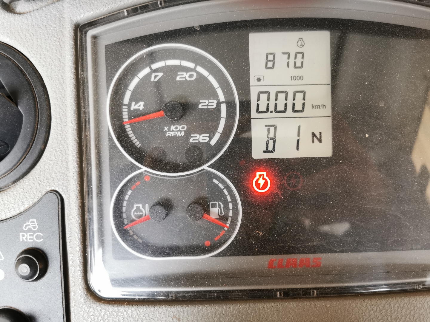 Wyrzuciło mi ten komunikat, ciągnik pracował normalnie. Zgasiłem, za 15min odpaliłem i znowu się pokazał. Zgasiłem i rozłączyłem hebel.