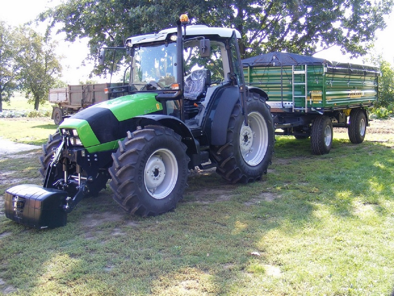 Zasław w prawie pełnym wyposażeniu: koło zapasowe, plandeka, zaczep automatyczny, jakieś klucze, instalacja dwuobwodowa - najlepszy zakup. Największy minus trzeba było kupować drugą od razu a stare sprzedać, łańcuch wewnętrzny trochę źle rozwiązany fabrycznie - został poprawiony i założony drugi na górny bort. Przyczepa godna polecenia, ładowność z lekką górką to 9800 kg pszenicy. Cena 43 lub 44 tyś netto nie pamiętam bo to zabawki brata.