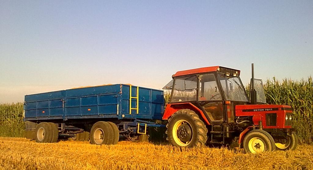 Sporo sporo, nie wiem ile jęczmienia, ale pszenicy podobno 14 ton wchodzi. Oczywiście sam dał radę, choć wyjazd na dróżkę lekko pod górkę latwy nie był. A na polu szybciej jak na czwórce nie dał rady Niemniej koła fajne duże to lekko idzie.