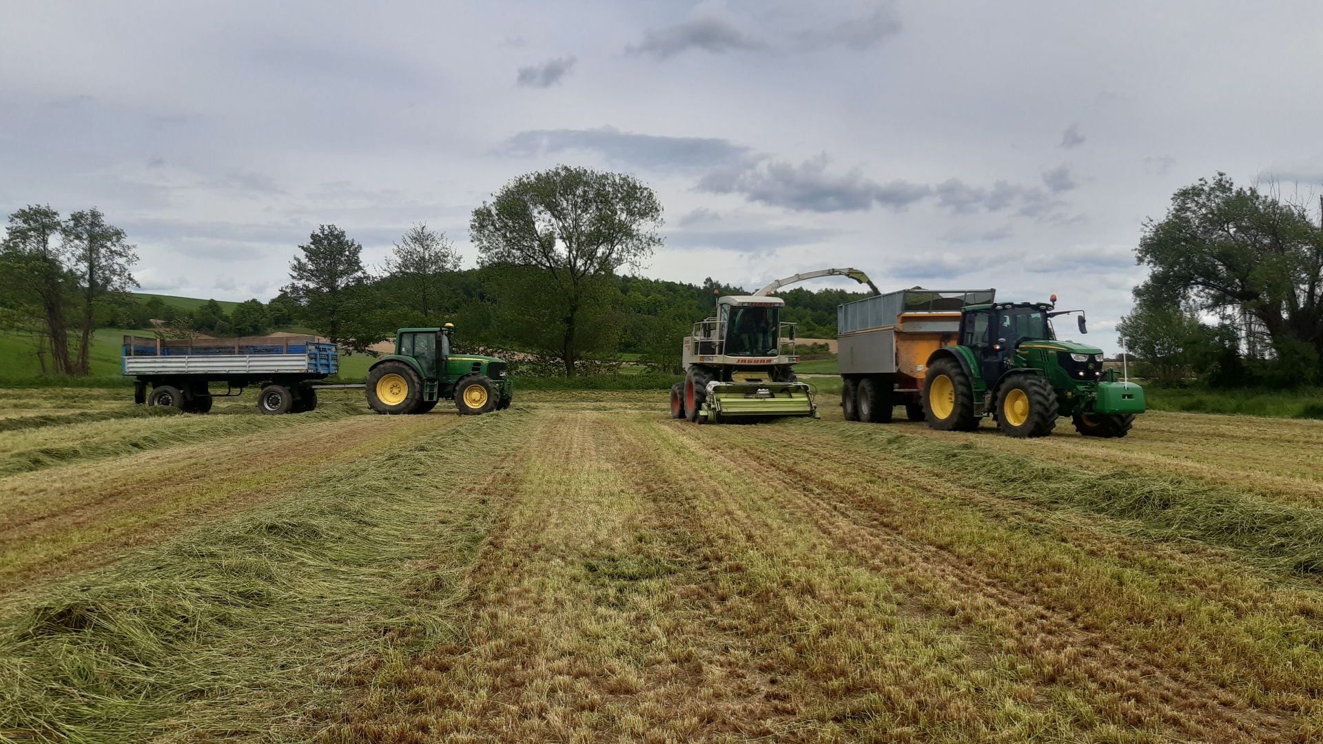 JD 6195M z Krone MX i MF 8730S z Krone RX