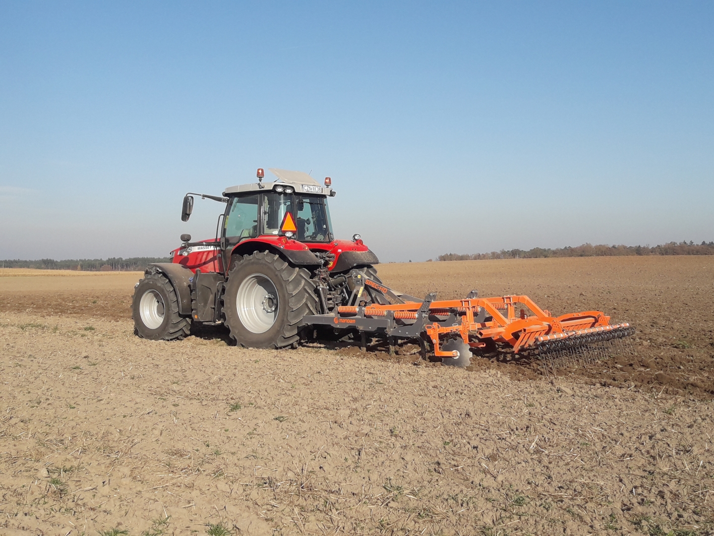 MF jeszcze oryginal ale zima trzeba pomyslec, ze specem radzi sobie wystarczająco, duzo zalezy od warunkow, gleby, głębokości. Tutaj robilem głęboko, nie mierzylem ale ok 30cm, ile uciagnal, w najciezyszych miejscach schodzil do 5km/h, sprezyny caly czas sie uginaly, a jak ziemia luzna to 7.5km/h i tu przydalby sie ciagnik 200km. Pod oziminy jade 8.5km/h i w/g mnie szybciej nie potrzeba. Myślę ze w sprzyjających warunkach od 130km mozna zaczynac prace i mam wrażenie ze na nowych redlicach idzie lzej jak na dojechanch.
