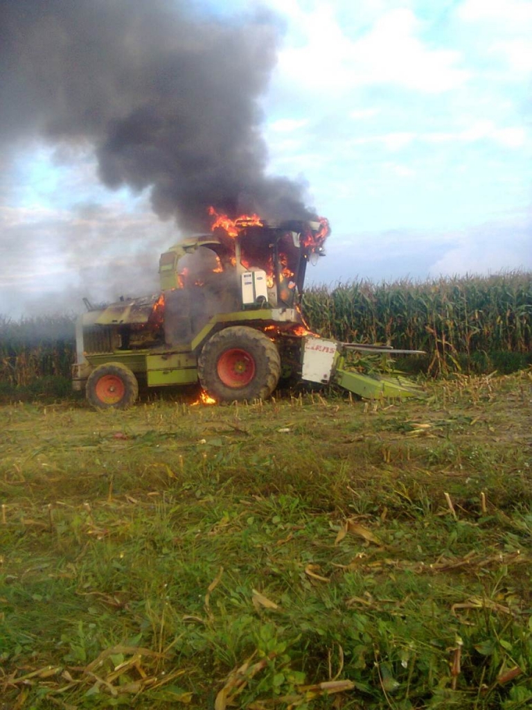 Ostrów Mazowiecka,kierowca cały,przyczyną pożaru zatarte łożysko,sieczkarnia nie moja.
